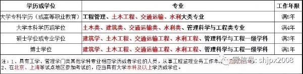 具有工程技術或工程經(jīng)濟專業(yè)大專以上(含大專)學歷,并符合下列條件之一者,可申請參加監(jiān)理工程師執(zhí)業(yè)資格考試。