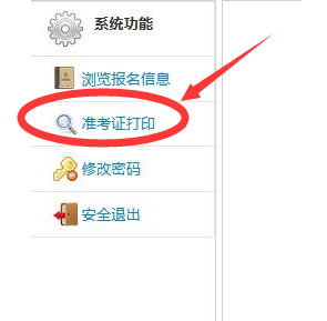 6、登錄后,點擊【準考證打印】,并仔細查看考場等個人信息。