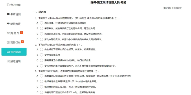 全部學(xué)時(shí)學(xué)習(xí)完成后,可進(jìn)入在線考核環(huán)節(jié),題目共 50 道,滿分 100 分,60 分(含)以上為合格?己宋赐ㄟ^的, 可繼續(xù)考核測(cè)試,直至合格為止,考核未通過不影響學(xué)時(shí)累計(jì)。