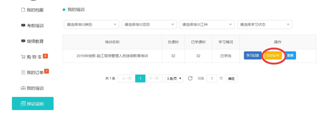 學(xué)時(shí)審核與考核全部通過后,可點(diǎn)擊【打印證書】查看 或下載學(xué)時(shí)證明。