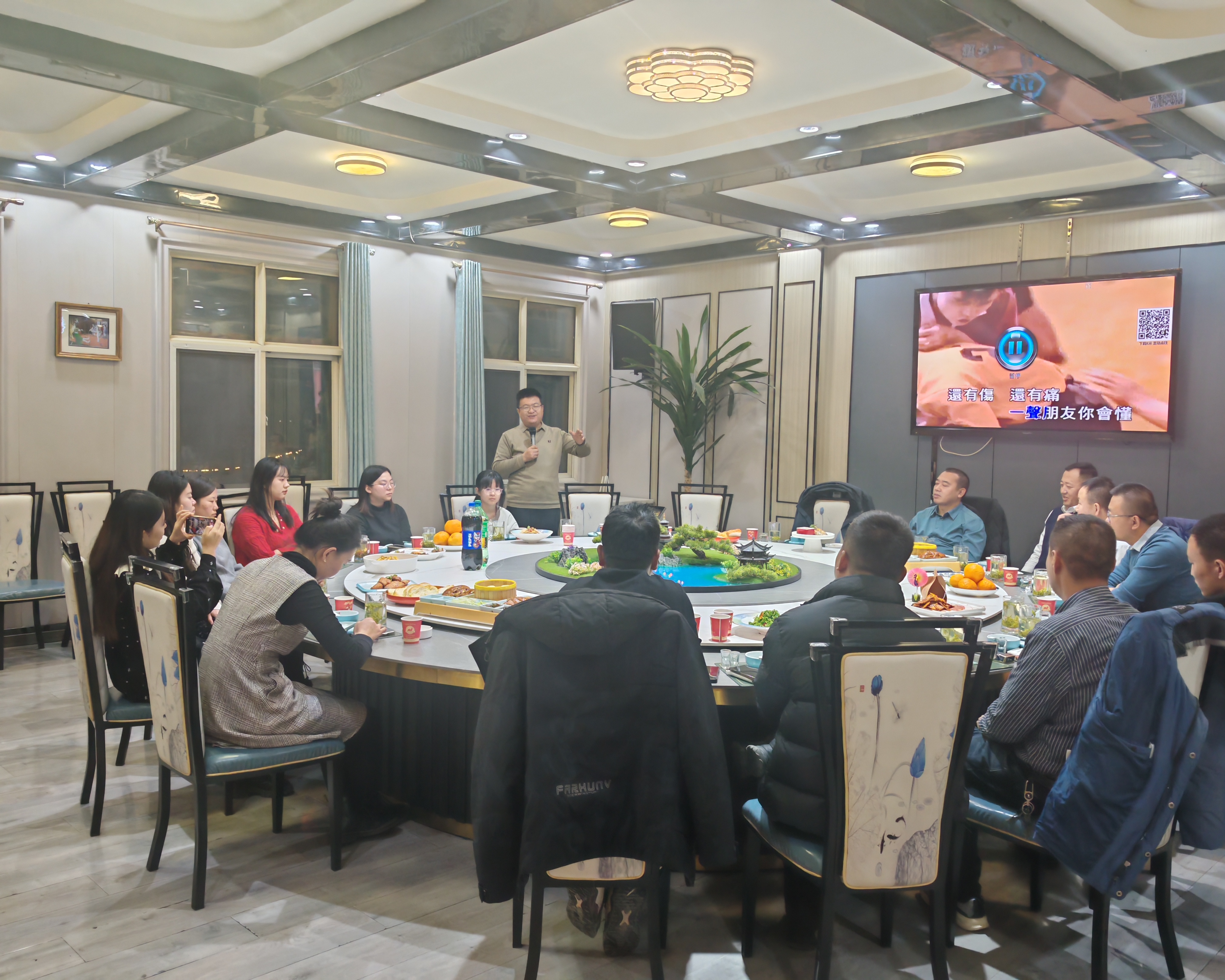 砥礪前行,再創(chuàng)輝煌。時間荏苒,2024已經(jīng)接近尾聲,2025年1月16日,中豐建科(集團)王總攜全體員工、森旺節(jié)能梁總攜員工,浩辰知識產(chǎn)權(quán)公司攜員工及訊豹網(wǎng)絡(luò)公司高總,典創(chuàng)公司張總齊聚一堂,吃炒菜、唱秦腔、打麻將,賞奇石,年前小聚,總結(jié)2024,2025再創(chuàng)輝煌!